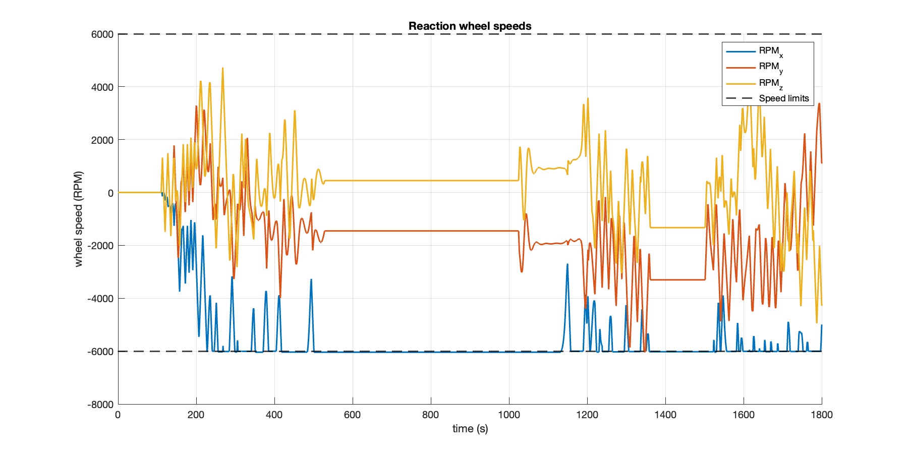 Reaction wheel speeds (RPM) with saturation limits